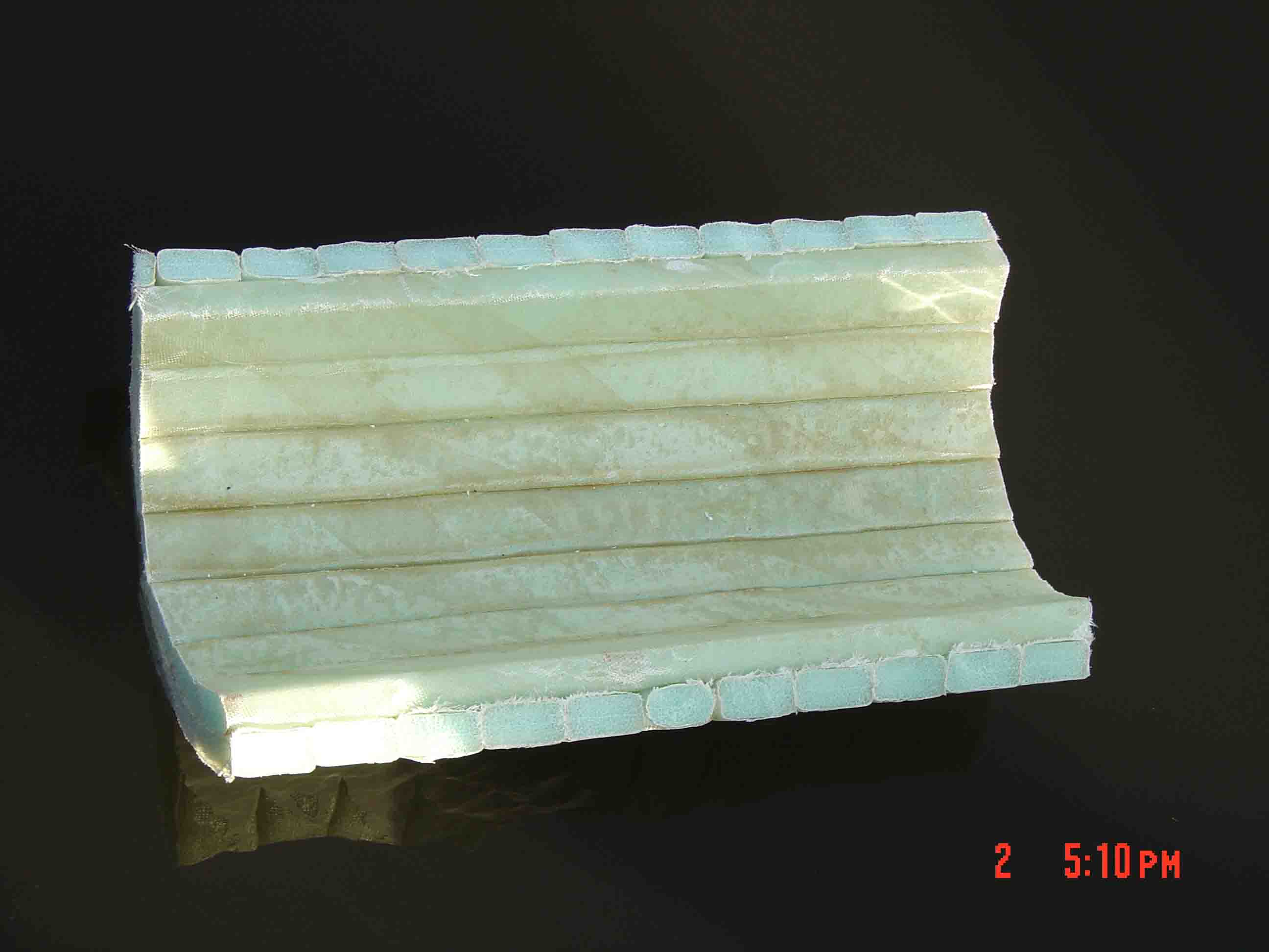 | In this photo you can see that the Y-Axis ribs form a continuous layer or plane. This is the first plane of the dual-plane, dual axis Matrix geometry. Notice that the Flexi-Beam sections touch and therefore will bond together as a single layer | ![]() |