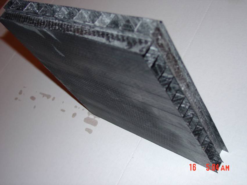 This Matrix flat panel is made with lightweight carbon fiber with no core material, which produces and extremely low density high, strength material. It is manufactured using the pultrusion process. Initial Tests of this Matrix product is being conducted by the Polymer Department at the University of Southern Mississippi. Our early results indicate that it is perhaps the highest strength-to-weight ratio composite material geometry that is known to exist. |
